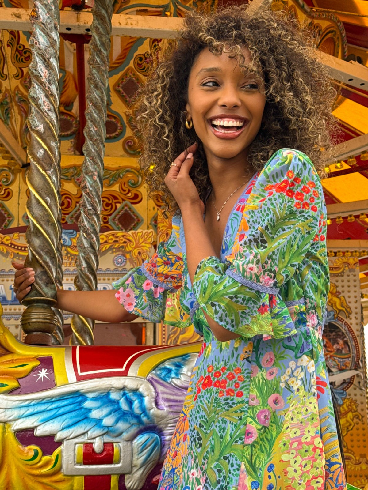 Sure to become a beloved part of your forever wardrobe, this brand-new design is new to Hope & Ivy’s summer collection. Featuring a hand-designed print in perfect shades of blue, pink and green, this dress comes complete with elegant lace detailing at the neckline and waist, plus a dramatic, maxi, thigh split skirt. A sublime choice for all your upcoming summer occasions.