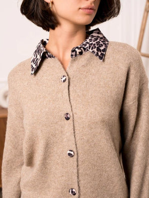 Cosy with a collar? Yes, please. In a sumptuously soft knit, the CINDY cardigan features a contrasting leopard print collar, cuffs and buttons. Designed to offer both comfort and style in one piece it is crafted in a slightly cropped silhouette for a refined silhouette. SWtyle with jeans for a casual off duty look.