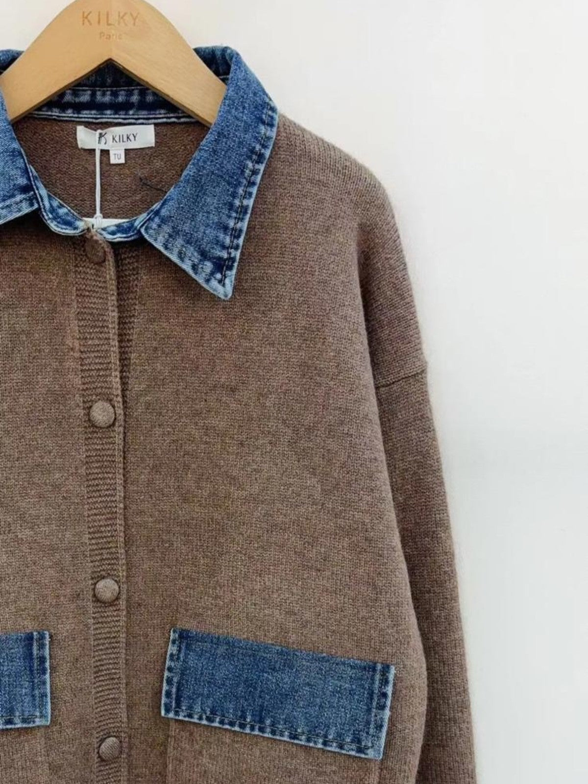 Denim collar & pocket flaps