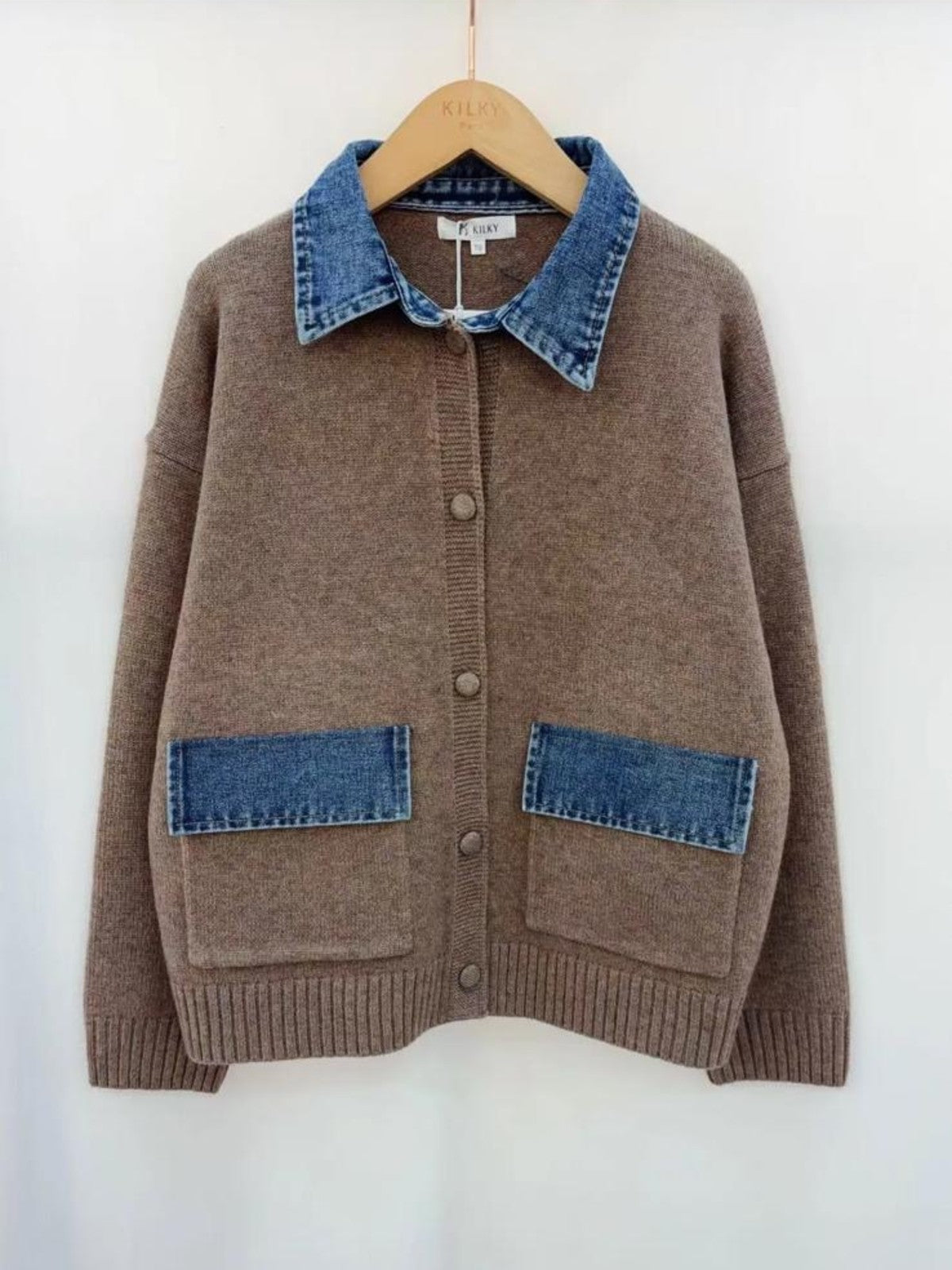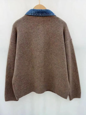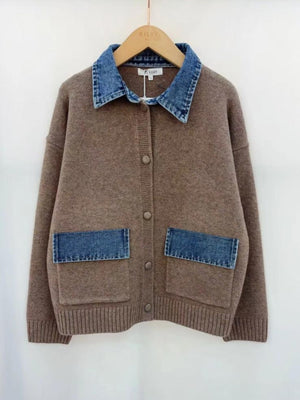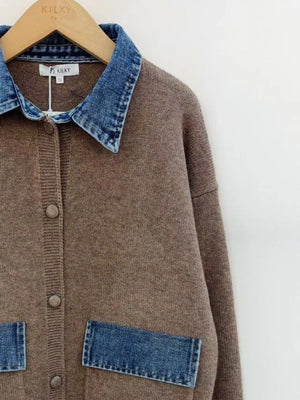 Taupe Denim Trim Cardigan