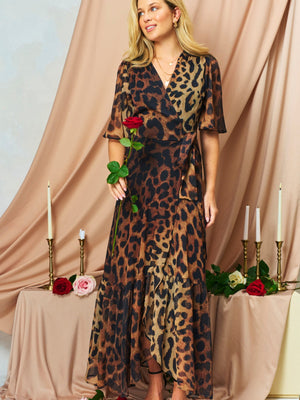 Have heads turning all season long in this classic Hope & Ivy wrap dress – new in for AW25. The LEXI is set to be a seasonal favourite, with an eye-catching leopard print decorating its soft, chiffon base. Thanks to its flowing maxi skirt and figure-enhancing waist tie, she cuts a beautiful silhouette, with feminine, flutter sleeves offering endless style. Whatever the occasion, The Lexi deserves a spot in your forever wardrobe this season.