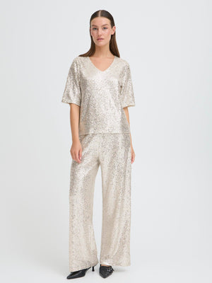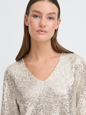 Add a splash of sparkle to your look with the FAUCA t-shirt. Featuring playful short sleeves and a flattering V-neck, this sequin top catches the light and turns heads wherever you go. Perfect for dancing the night away or brightening up your day, it combines fun and style effortlessly.