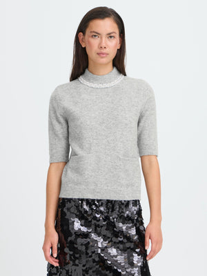 The MACON pullover combines elegant design with subtle detailing, featuring a refined pearl trim around the turtle neck that adds a touch of sophistication. Crafted with cropped sleeves, this jumper offers a modern silhouette ideal for layering or wearing alone. Its premium knit fabric ensures comfort and durability, making it a versatile addition to any expert wardrobe seeking style and timeless charm.