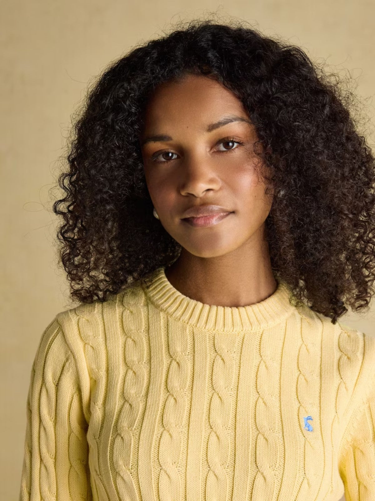 Our refined cable knit jumper will elevate your wardrobe with its classic aesthetic. Crafted to a regular fit from 100% cotton, it features ribbed trims and is tastefully finished with our iconic embroidered hare at the chest. It's the perfect transitional piece to see you through the seasons. Try styling this crew neck with a shirt or a T-Shirt underneath, or wear it alone for a preppy finish