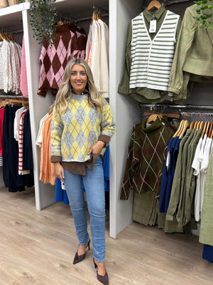 Grey & Lemon Diamond Jumper