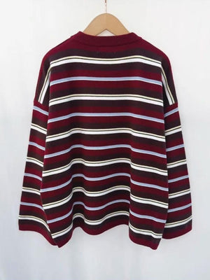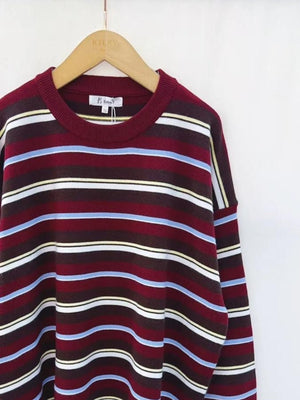 The KRISSY jumper is your new go-to for effortless style. Featuring multicolour stripes that pop against a bold burgundy base, this relaxed-fit piece works beautifully with everything from jeans to tailored trousers. One size fits all, making it the perfect grab-and-go option for those mornings when you want comfort without compromise. Cosy, versatile, and undeniably chic.