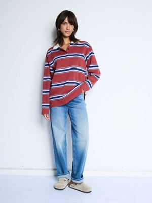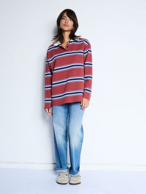 Elevate your casual wardrobe with the OPHIA polo, a striking rust-coloured piece that commands attention. The crisp white collar adds a fresh contrast, creating a look that's effortlessly put-together. Perfect for weekend hangouts or smart-casual occasions, this striped polo blends timeless style with modern edge. Comfortable, versatile, and undeniably cool—your new go-to favourite awaits.