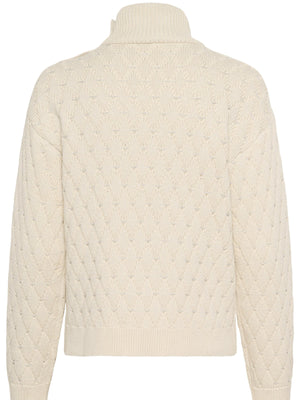 Add a touch of sparkle to your cold-weather wardrobe with the Varuna Jumper. This diamond knit roll neck jumper combines classic texture with subtle lurex threading, creating a stylish shimmer that catches the light beautifully. Designed for warmth and elegance, it’s perfect for both casual days and festive occasions, offering comfort without sacrificing glamour. Elevate your knitwear collection with this irresistibly chic piece.