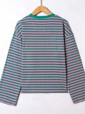 The Carol Striped Top brings effortless style to your everyday wardrobe with its eye-catching green and pink striped design. Long sleeves provide versatile coverage perfect for layering or wearing solo, while the classic stripe pattern adds visual interest to any outfit. Whether you're dressing up for work or keeping it casual, this top transitions seamlessly between seasons and occasions. A wardrobe essential that combines comfort with contemporary flair.