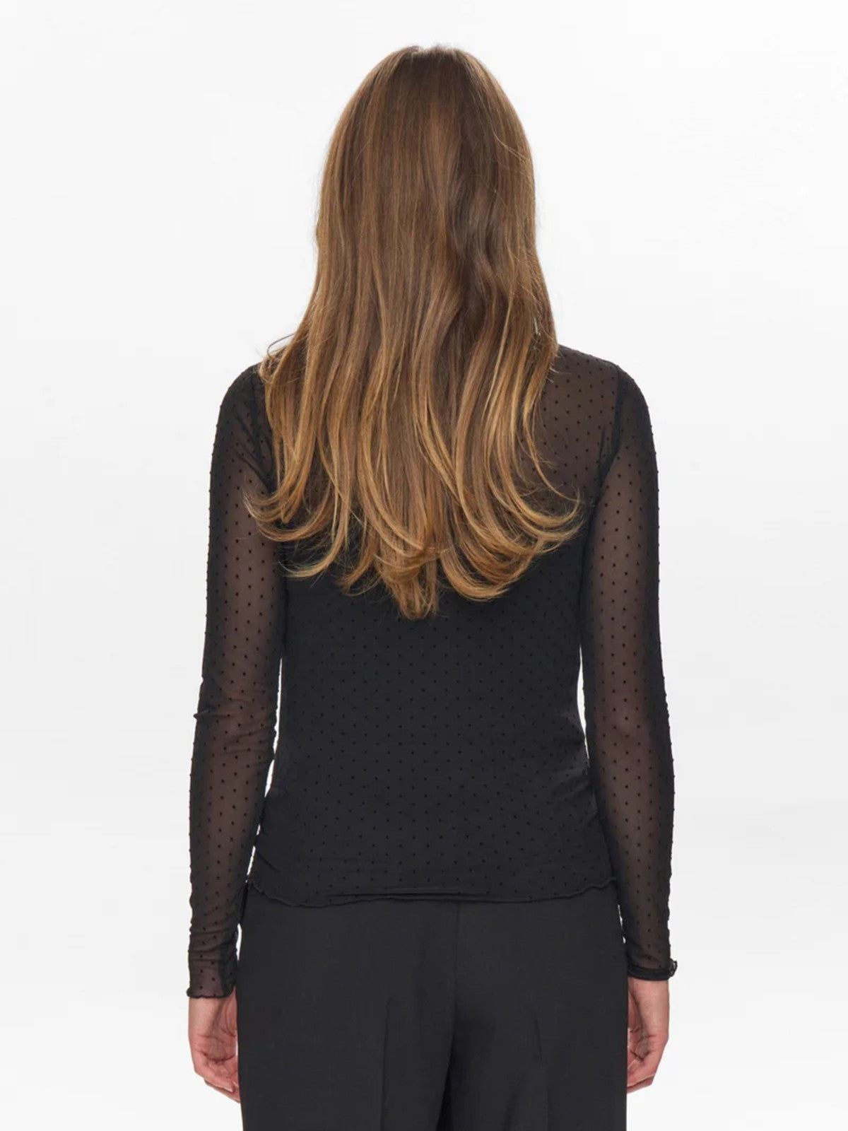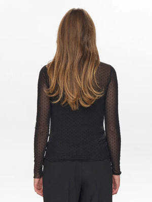The JINNIE top features a refined black dobby mesh fabric that combines subtle texture with elegant transparency. Designed for a sophisticated silhouette, it offers a lightweight, breathable layer that enhances any ensemble with understated glamour and modern style. Perfect for those who appreciate chic, effortless dressing.