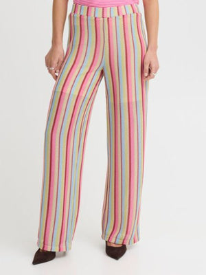 Make a statement in these eye-catching multi-stripe trousers, designed to bring effortless colour and movement to your wardrobe. Featuring a flattering high-rise elasticated waistband, they offer a comfortable, pull-on fit that sits neatly at the waist while creating a beautifully elongated silhouette.