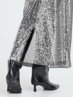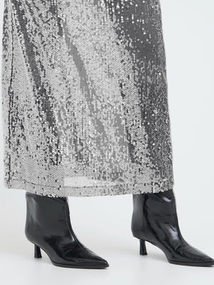 Add a dash of sparkle to your wardrobe with the PRINCA skirt. This sequin midi skirt catches the light beautifully, perfect for dancing the night away or turning heads at any party. Its flattering length and playful shimmer make it a standout piece that’s both fun and fabulous. Step out with confidence and let your outfit shine as bright as you do.