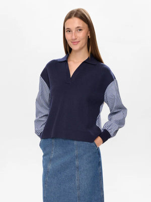 The Numph MARSY pullover features a stylish design with contrasting back and sleeves, offering an elevated look that combines modern aesthetic with versatile wearability. Crafted to enhance your wardrobe, this pullover effortlessly balances unique detail and everyday sophistication.
