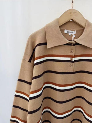 Meet your new go-to jumper! The COLEEN Striped Jumper pairs playful orange and navy stripes with a classic polo cut that's anything but boring. Long sleeves keep you cosy while the fun colour combo adds instant personality to your look. Throw it on with jeans, dress it up with tailored trousers, or layer it over a tee—this striped beauty works harder than you'd think. Simple, stylish, and ready to become your favourite reach-for piece.