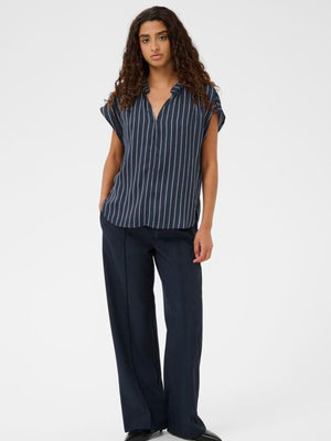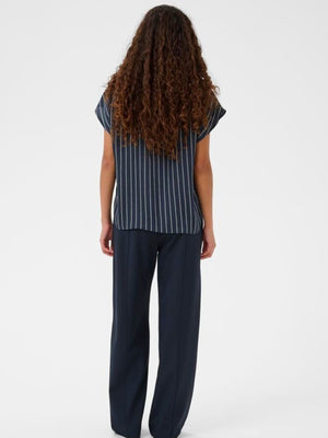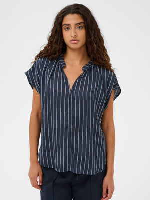 The IOANA top is a timeless wardrobe essential featuring classic navy and white stripes in a flattering short-sleeved cut. Perfect for effortless layering or standalone wear, this versatile piece transitions seamlessly from casual days to relaxed evenings. The crisp striped pattern adds visual interest while remaining easy to style with your existing collection. Comfortable and chic, it's the go-to top you'll reach for again and again.