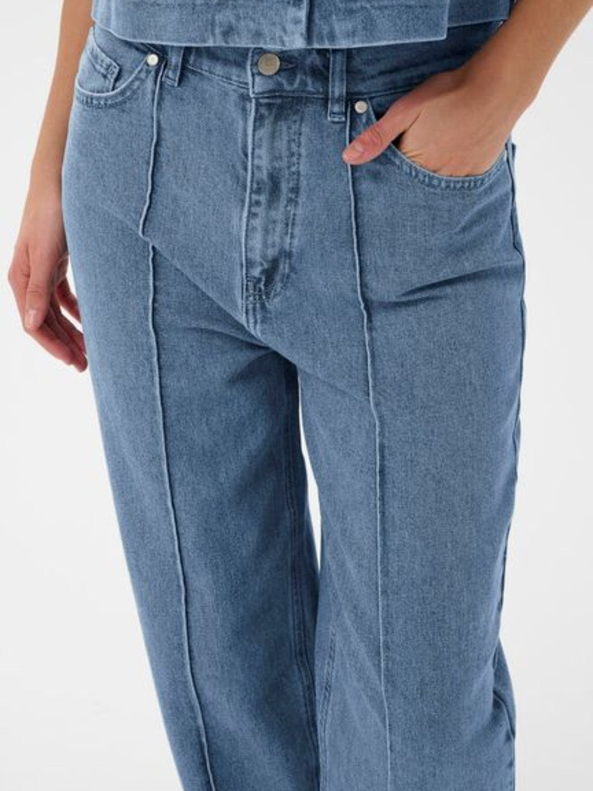RINATINA Jeans combine timeless denim craftsmanship with contemporary silhouette. These high-waisted barrel leg jeans offer a flattering fit that elongates the frame whilst providing comfortable movement throughout the day. The mid-wash denim delivers versatility, pairing effortlessly with everything from crisp white shirts to oversized blazers. A refined choice for those seeking elevated everyday wear with understated elegance.