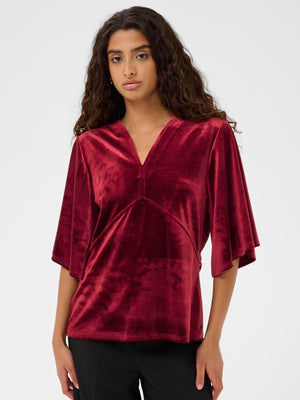 Elevate your style with the VELERA blouse, crafted from sumptuous velvet for a rich, luxurious feel. Its elegant V-neck and short angel sleeves create a graceful silhouette that effortlessly enhances your look. Perfect for making a confident statement at any event, this blouse combines comfort with undeniable sophistication. Make it yours and transform your wardrobe today.