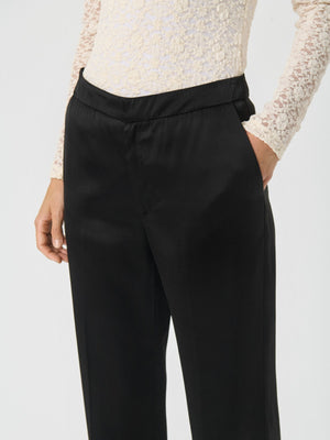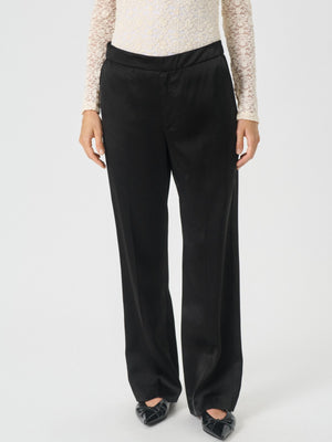 These black trousers in a light and glossy fabric feature a relaxed fit with straight legs and an elastic waistband for all-day comfort. Style them with a shirt for an elegant touch or with a T-shirt for a more laid-back look.