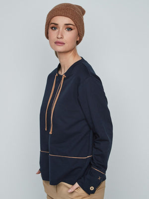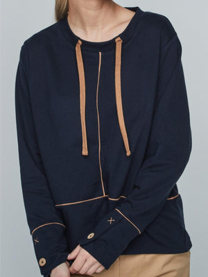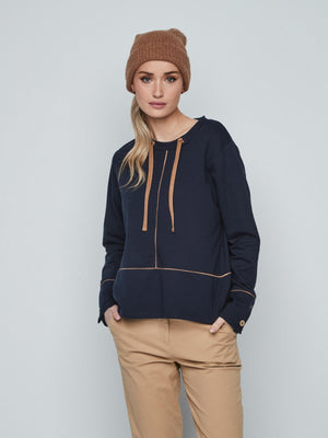 The AVRIL top is distinguished by its refined contrast piping that outlines the the neck, cuffs and placket for a polished tailored look. A contrasting drawstring neck tie offers versatile styling options for an effortless finish. Crafted from a cotton blend this top delivers both style and comfort.