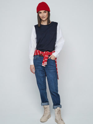 The BROOKE sweatshirt reimagines a casual staple with a thoughtful twist. A soft cotton-jersey sweatshirt body provides ultimate comfort, while crisp, contrasting poplin sleeves creates a layered effect. The result is a refined, effortlessly stylish piece that elevates your everyday wear.