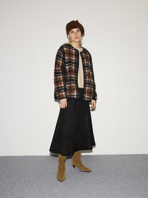 Made from a cosy polyester, the KOLIRA jacket is a cold weather staple, featuring a button down front fastening, dual side pockets and doused in autumnal checks, perfect for wearing over a hoodie or a graphic t-shirt.